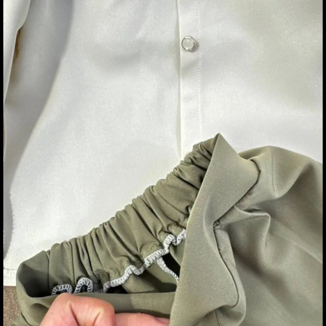 سایز۲:قد بلوز ۳۶ پهنا ۳۲ آستین ۳۷ شلوار ۶۳ کمر در حالت کشسانی ۶۴ دورران ۴۸قد ژیله ۲۹ پهنا ۳۱